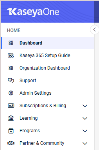 Dashboard | The dashboard is your KaseyaOne landing page, which you see when you initially log in. Review this whole article for a breakdown of all dashboard components and access requirements. | Master Billing User Co-Managed User |