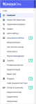 The KaseyaOne left navigation menu, which persists across all pages, provides access to various areas both within and outside of KaseyaOne. Menu items with chevrons are expandable () and collapsible (