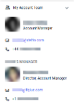 The persistent My Account Team widget contains the contact information (names, titles, email addresses, and phone numbers) of both the Kaseya account manager assigned to your company and their immediate supervisor.