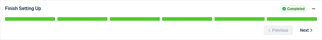 To navigate to the Setup Summary page for a full-page view of the onboarding checklist and your account progress, click the menu in the upper-right corner of the widget and select View All. Refer to Onboarding checklist.