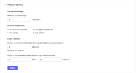 It's important to define a password policy that will establish a standard for creating secure passwords and protecting passwords. This allows you to protect your business from cyber criminals trying to gain access to your data. Only Master users can change the password requirements for KaseyaOne.