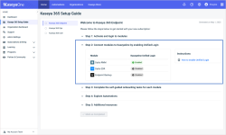 The Kaseya 365 Setup Guide page in KaseyaOne provides customized onboarding steps for each new Kaseya 365 subscription purchased for your KaseyaOne account. Click Kaseya 365 Endpoint to view the steps you will follow to set up your subscription.