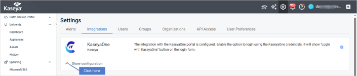 Spanning Backup (managed through UniView Portal) | Enable Log In with KaseyaOne for UniView Portal (for Datto Backup for Microsoft Entra ID, Endpoint Backup V2, Spanning, and Unitrends)