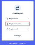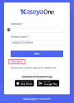 Instructions follow on how to request your username, company name, or a password reset from the KaseyaOne login page should you forget one of them when logging in to your account.