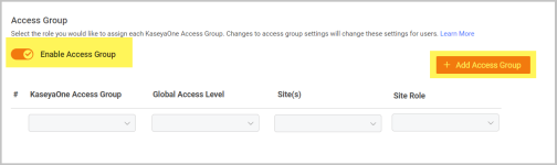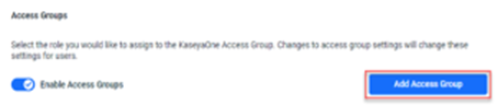 - Click Add Access Group to create a new KaseyaOne Group-to-[Module] Role mapping.