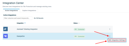 - Go to the Active Integrations tab, click the options menu and select Integration Settings.