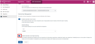 - In the Central User Management section, turn on Enable Automatic User Deprovisioning.