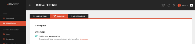 - In the Unified Login section, make sure Enable Log In with KaseyaOne is turned on.