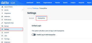 To enable Log In with KaseyaOne for Datto EDR, do the following: