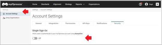 - From the MyITprocess home page, navigate to Settings> Account Settings and then the Security tab.