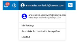 ). - Click My Account > My Settings on the top navigation menu and then select Associate Account with KaseyaOne.