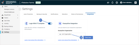 To enable Log In with KaseyaOne for Spanning Backup for Microsoft 365, do the following: