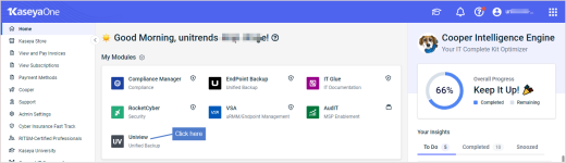- You can see that the UniView module has been added to KaseyaOne. To connect to UniView from KaseyaOne, click the UniView module:
