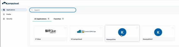 Click the KaseyaOne SSO application that you configured in the JumpCloud User Portal.