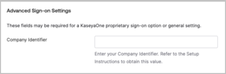 Scroll down to the Advanced Sign-on Settings section and enter the KaseyaOne Company Identifier:
