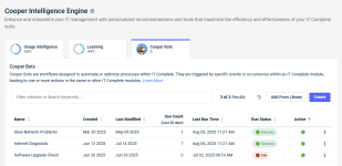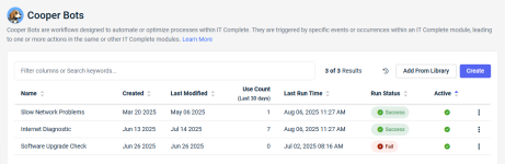 Cooper Bots are available in the Cooper Bots tab on the Cooper Intelligence Engine page and on the Cooper Bots page. Refer to Security and navigation.