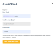 Until you new email address is verified, you will still be able to log in with your current email address and password.