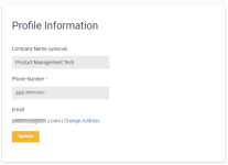 On the Profile Information page that opens, change the Company Name and Phone Number as required.