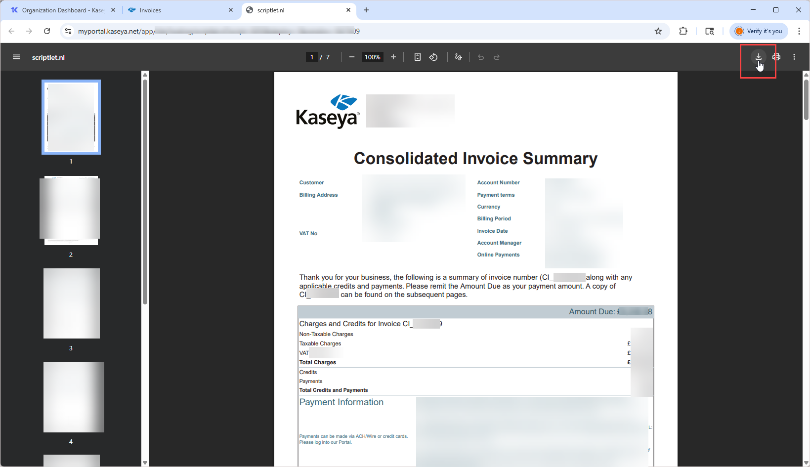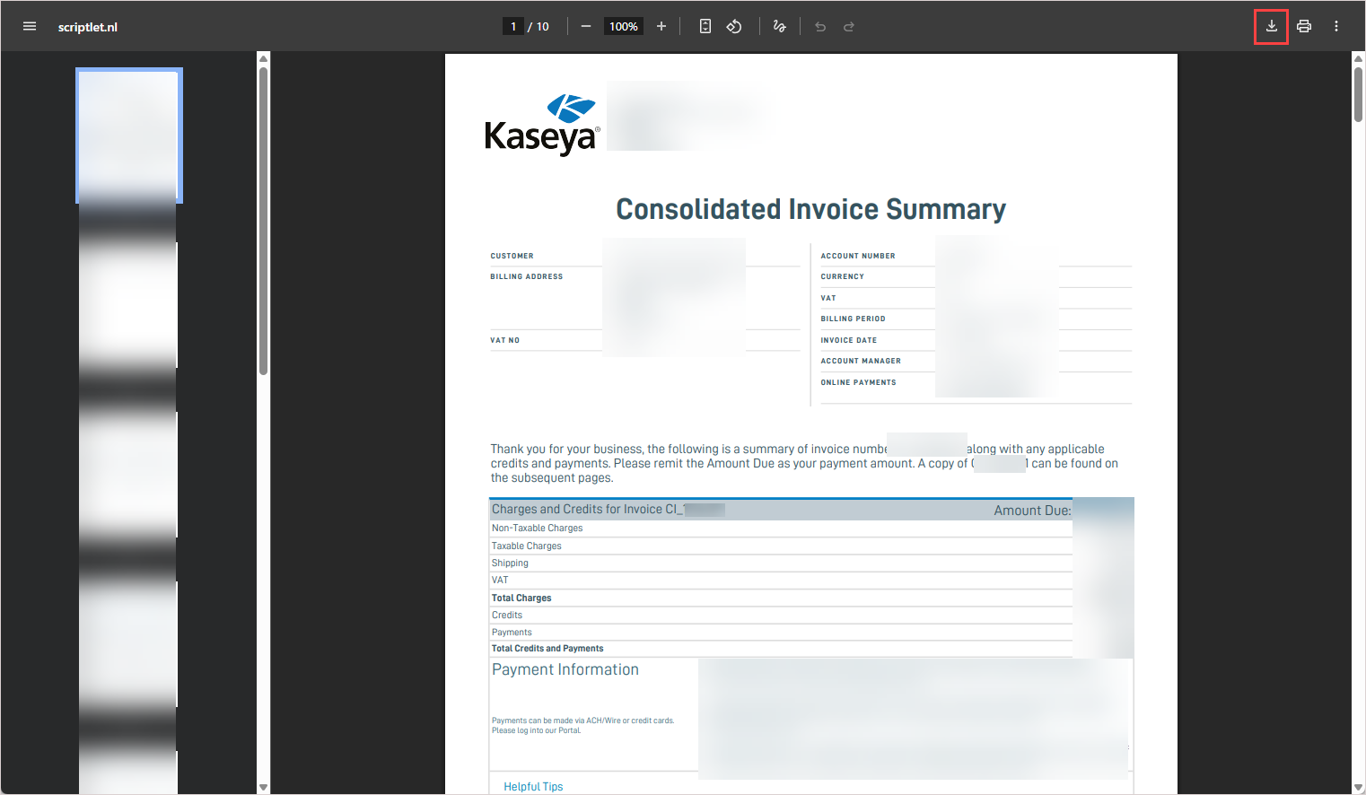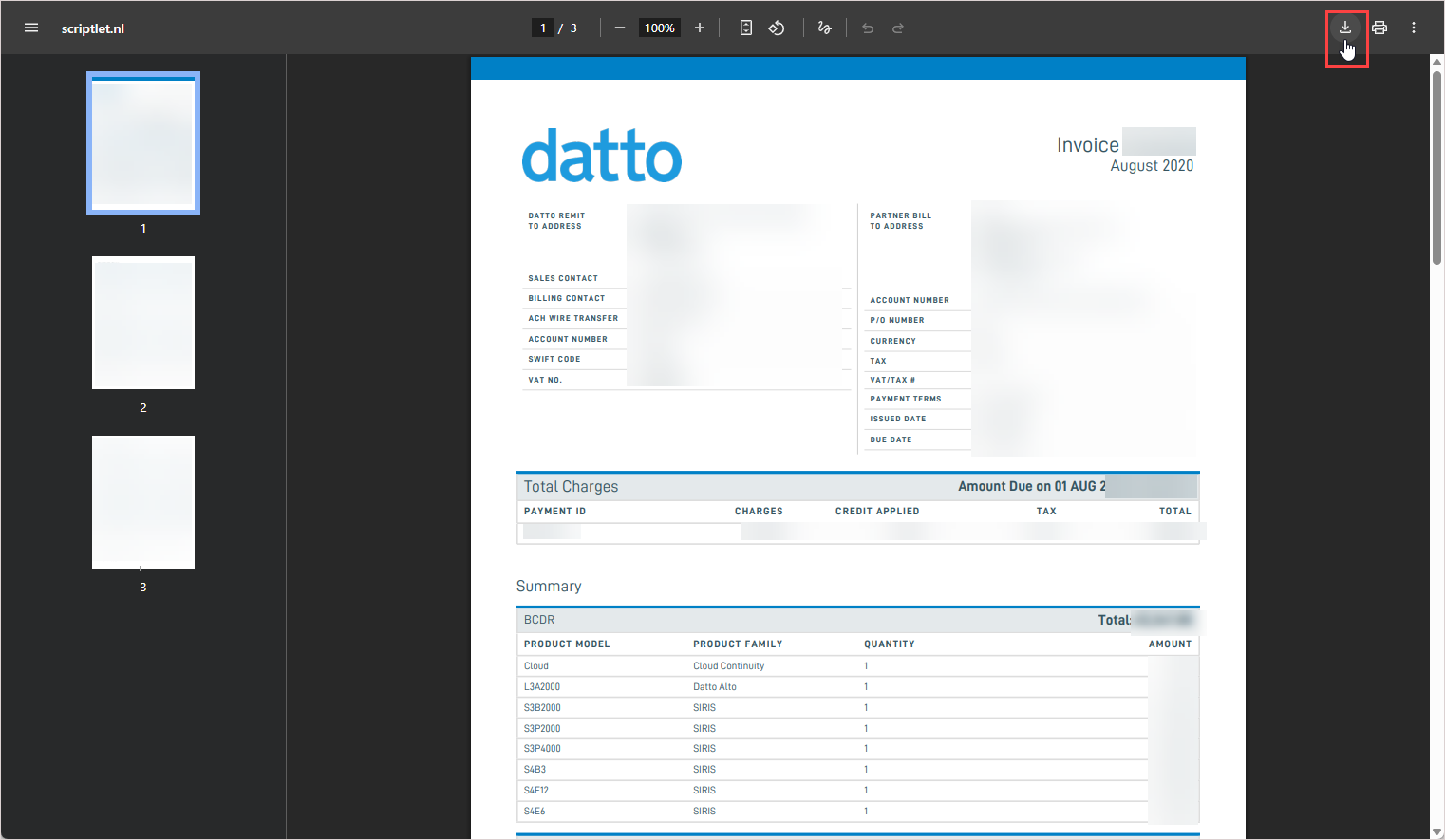 You can view and download past invoices up to three years from the current date. If you are a previous Datto customer, you can also view and download older historical invoices.