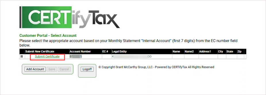 Click Submit Certificate to confirm and submit your tax exemption status. You’ll receive a confirmation message once your submission is complete.