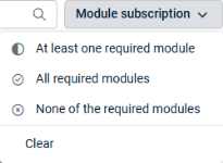 To filter by the modules you do or do not own, select one of the following options from the Module subscription drop-down menu: