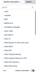 To only see options that include a certain module or certain modules, select any number of Kaseya modules from the list, and then click anywhere outside of the drop-down menu to populate the results. The results also reflect any filter selected in the Module subscription drop-down menu.