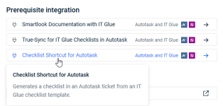 Certain Kaseya automations are prerequisites for other automations, meaning you should configure a prerequisite automation before configuring the next-level automation(s). You'll know if an automation has prerequisites if you see the This integration is a prerequisite for section in its detail pane, and you'll know if an automation is a prerequisite if you see the Prerequisite integration section in its detail pane.