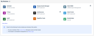 - Easy-to-navigate visibility of all Kaseya platform features, module integrations and automations, and third-party integrations.