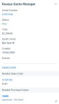 - Related Purchase Orders: If any related purchase orders exist, click the link(s) to open the purchase order(s) in Kaseya Quote Manager.