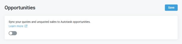 - Opportunity True-Sync with Autotask: Configure the opportunities sync