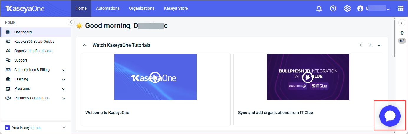 For more details, refer to Navigating KaseyaOne.