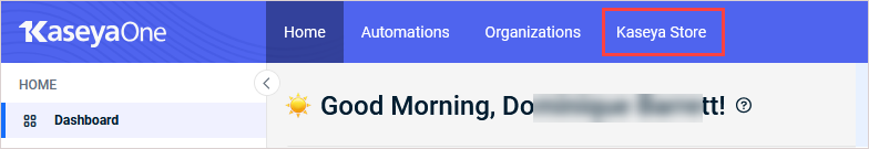 Kaseya Store now appears directly below Home on the left navigation menu.