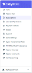 - The new top navigation menu in the header guides you to key areas of KaseyaOne and dynamic left navigation menus.