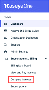 Access this tool by selecting Compare Invoices under Subscriptions & Billing in the left navigation menu: