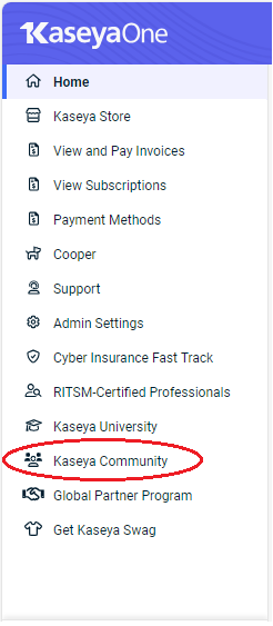 Access the Kaseya Community Ideas Portal from the KaseyaOne Help menu
