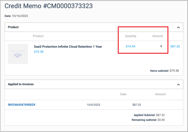 After making a payment in Kaseya Store, links to the payment details and payment methods (Credit Memo) that were used for the payment are now available on the payment confirmation page, where you can view or download the details in PDF format.