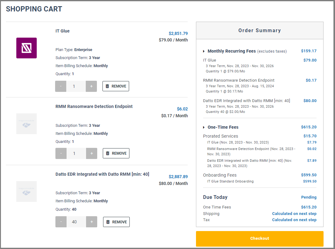 The following error message associated with the Datto EDR Integrated with Datto RMM quantity field now appears next to the field giving customers a chance to correct the quantity before checkout.
