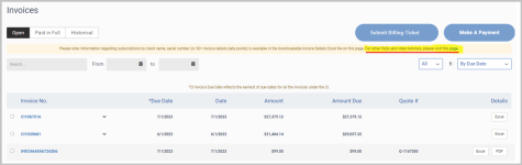 Download an enhanced invoice details file with additional data (30+ data points) in Excel format — such information regarding subscriptions by client name, serial number, and asset tag # commitment end date.