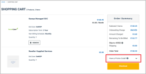 When a customer tries adding the Webroot Antivirus - On-Prem product to their cart, the correct warning message now prompts them to add the required (Kaseya VSA Professional Edition - On-Prem) product.