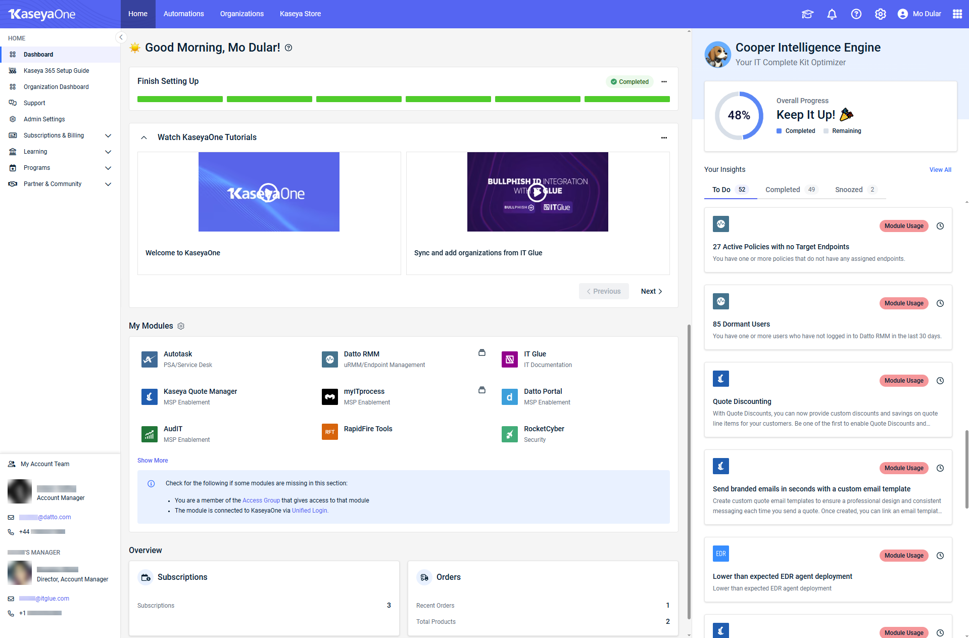 Cooper Intelligence Engine: Streamline your IT management with personalized recommendations and tools that maximize the efficiency and effectiveness of your Kaseya suite.
