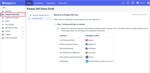 NAVIGATION KaseyaOne left navigation menu > Kaseya 365 Setup Guide