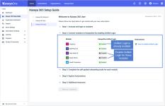 See the table below for links to instructions on how to enable Unified Login for each of your modules. Upon clicking a link, the Enable Log In with KaseyaOne article opens in a separate tab. Simply return to this tab to continue to the next procedure.