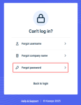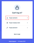 Instructions follow on how to request your username, company name, or a password reset from the KaseyaOne login page should you forget one of them when logging in to your account.