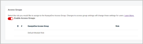 If you disable Access Groups, then RBAC from KaseyaOne will not be allowed for the module.