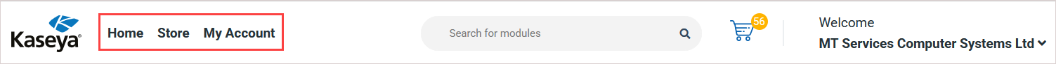 - My Account. Go to this page to manage your purchases, invoices, and Kaseya Store settings.