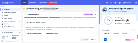 From KaseyaOne, you can easily access Kaseya Store by clicking Kaseya Store on the top navigation menu. The Kaseya Store Home page opens in a new tab.