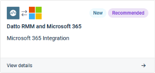 Certain Kaseya automations are prerequisites for other automations, meaning you should configure a prerequisite automation before configuring the next-level automation(s). You'll know if an automation has prerequisites if you see the This integration is a prerequisite for section in its detail pane, and you'll know if an automation is a prerequisite if you see the Prerequisite integration section in its detail pane.