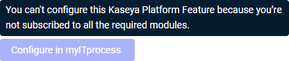 To leverage a platform feature, you must be subscribed to the module that hosts it and to at least one integrated module the feature supports. Modules included in platform features must be connected to KaseyaOne.