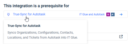 The True-Sync for Autotask and True-Sync for BMS automations are prerequisites for several of the automations available in a PSA-IT Glue integration. You must sync your data across IT Glue and your PSA module in the integration sync settings in IT Glue before leveraging the other automations these integrations offer.
