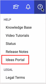Access the Kaseya Community Ideas Portal from the KaseyaOne Help menu